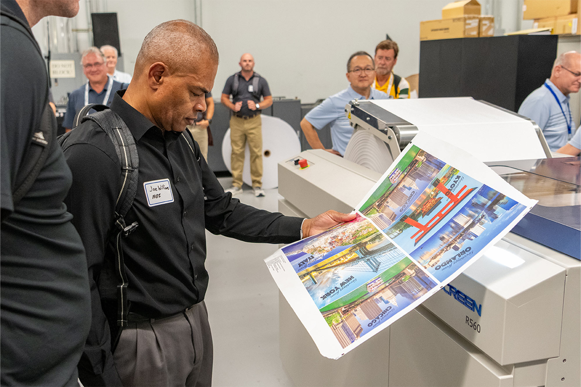 On the evening of October 22, attendees were also invited for a special treat to see the Truepress JET 560HDX live at Sandy Alexander’s facility in Orlando, Florida. A full-service printer headquartered in Clifton, New Jersey, Sandy Alexander recently had the SCREEN technology installed in the company’s 45,000-square-foot facility in Orlando to meet its customers’ growing demand for complex personalization.