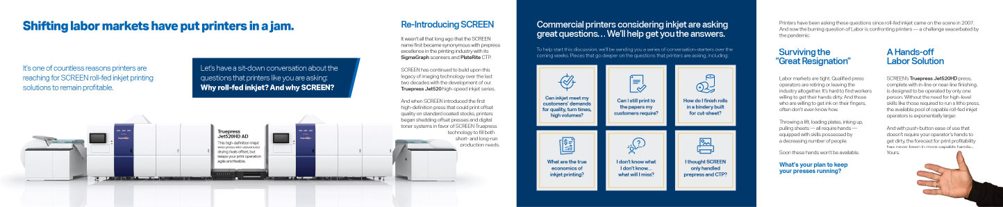 Today’s high-speed, roll-fed inkjet technology from SCREEN gets direct mail pieces in the mailbox faster while allowing printers to fulfill last-minute requests quickly with the ease and convenience of one operator.